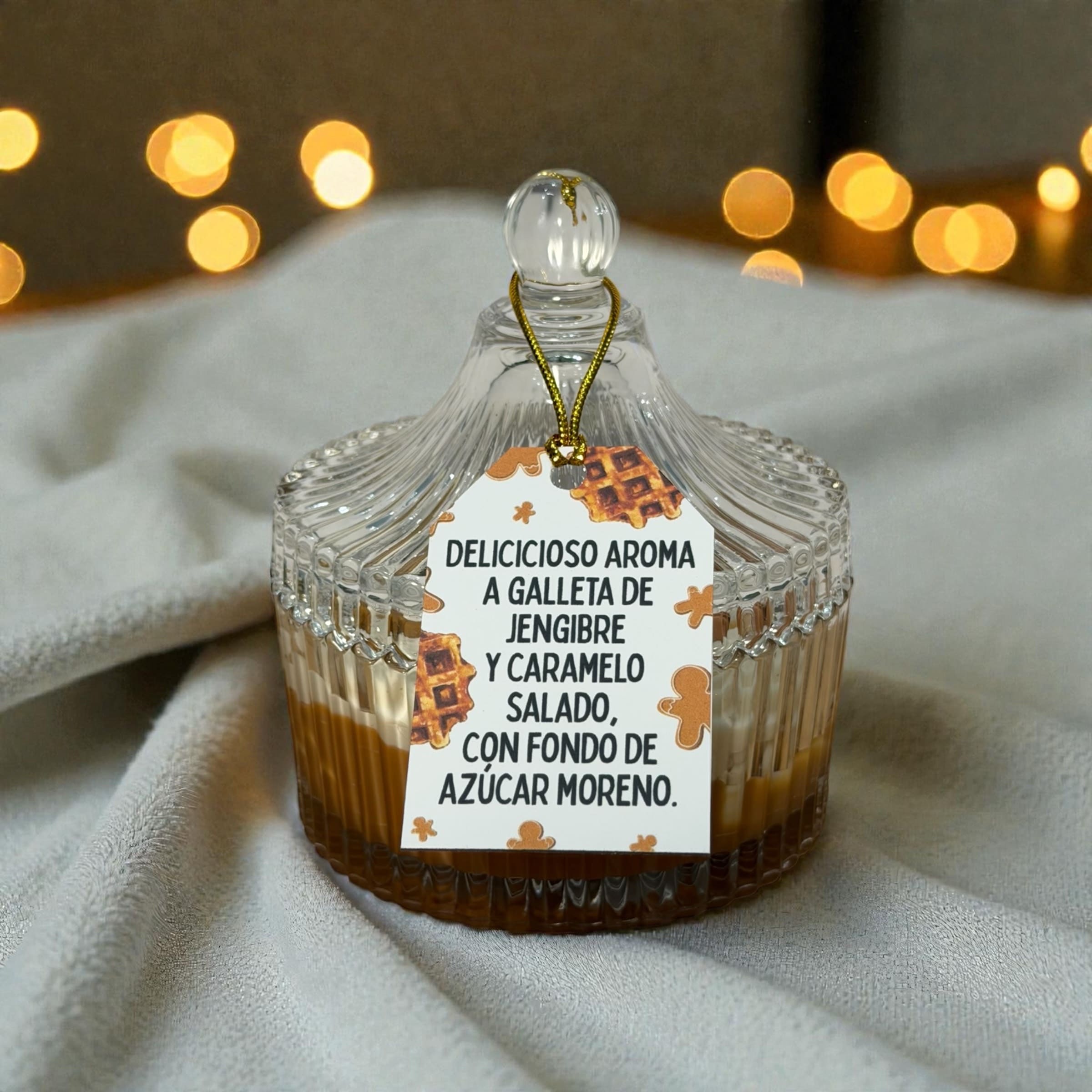 Delicioso aroma a galleta de jengibre y caramelo salado, con fondo de azúcar moreno.